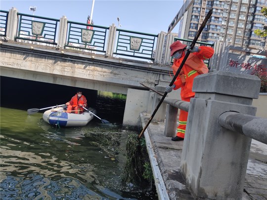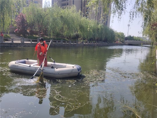 公司根據(jù)各河道水草生長(zhǎng)情況,采用“先割后清”、“分段切割,集中打撈”的方法進(jìn)行推進(jìn)式作業(yè),每天組織近30名人員分切割、打撈和清運(yùn)三個(gè)小組集中開(kāi)展水清打撈清運(yùn)作業(yè),截止目前,園區(qū)利民河、富民河、十支河、民便河水草已全面清理結(jié)束,蔡莊大溝水計(jì)4月底前全面清撈到位,重現(xiàn)園區(qū)“碧波潺潺、河暢水美”的河道景觀。