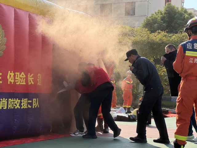 活動中,園區(qū)消防大隊工作人員和公司消防志愿者向現(xiàn)場員工發(fā)放消防安全常識二十條宣傳單,細致介紹了各類滅火救援器材的使用方法和初期火災處置、火場逃生自救等消防安全知識?;顒蝇F(xiàn)場設置了火場逃生和火災處置等模擬場景,參加活動的員工積極體驗,主動提升自身應對火災的能力。
