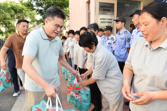 入伏以來(lái),宿遷持續(xù)高溫晴熱天氣,給堅(jiān)守一線崗位的勞動(dòng)者帶來(lái)不小挑戰(zhàn)。為有效落實(shí)防暑降溫措施,切實(shí)保障一線員工身體健康與作業(yè)安全,7月24日,建發(fā)公司組織開展了一線員工高溫慰問(wèn)活動(dòng)。公司副總經(jīng)理倪松、相關(guān)部門負(fù)責(zé)人參加了慰問(wèn)。