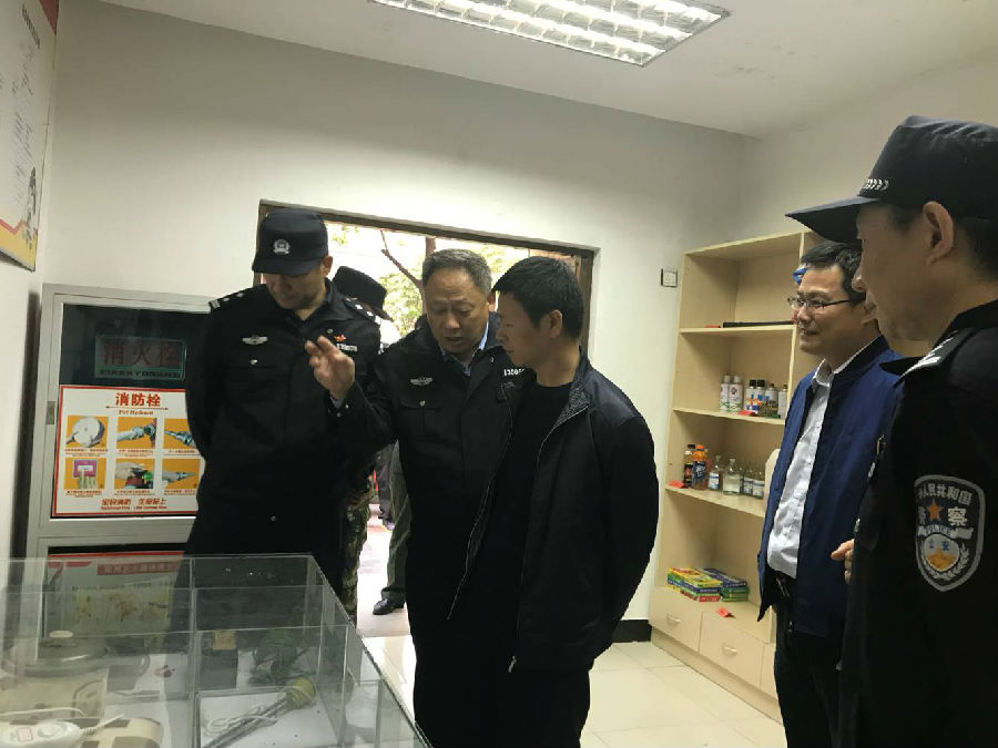 為全力確保十九大期間安全防控形勢,打贏十九大園區(qū)安保攻堅戰(zhàn),10月19日,市公安局副局長陳紅淦、蘇宿工業(yè)園區(qū)公安分局副局長劉勇、蘇宿工業(yè)園區(qū)消防大隊大隊長宗靈明一行率專項督導檢查組到園區(qū)公舍檢查督導十九大消防安全保衛(wèi)工作,建發(fā)公司副總經(jīng)理倪松及其相關(guān)負責同志陪同檢查。