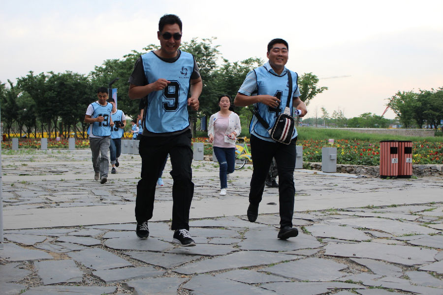 烈日炎炎,隨著“東方不敗、永遠(yuǎn)不敗”和 “屠龍隊、專治不敗”口號吶喊,兩支斗志昂揚的隊伍踏上三臺山尋寶征途。在指導(dǎo)教官的監(jiān)督下,按照尋寶秘籍的指引,隊員們?nèi)翰呷毫Γ群笸瓿伞凹w跳躍合拍”、“征集十二個陌生人合影”、“募集五十元”等寓意深刻的團(tuán)隊合作任務(wù)。尋寶全程7公里,在到達(dá)終點前路程中,隊員們體能已經(jīng)達(dá)到極限,但沒有一個人掉隊,大家相互扶持,沖刺到了終點。