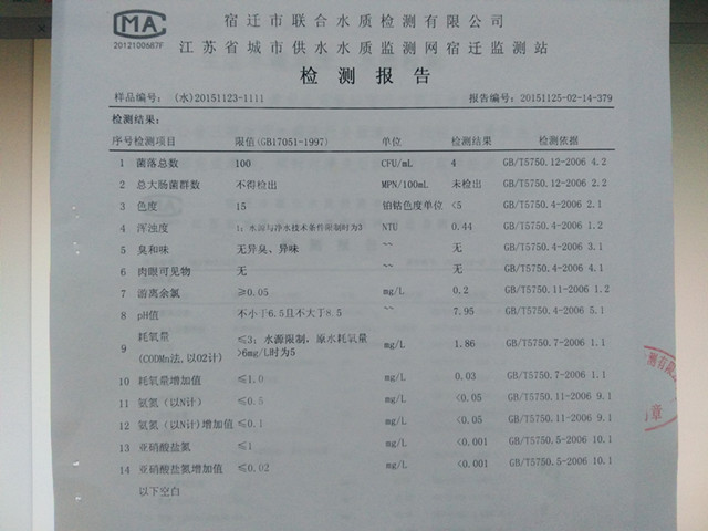 11月23日下午,建發(fā)公司組織宿遷市聯(lián)合市政工程有限公司開(kāi)展三期生活水箱下半年清洗工作。截止25日,水箱清洗、消毒,水質(zhì)檢測(cè)已全面完成。